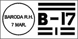 | B-17/1 - All-India Series Obliterator (1873-1884) for Baroda Receiving House |
